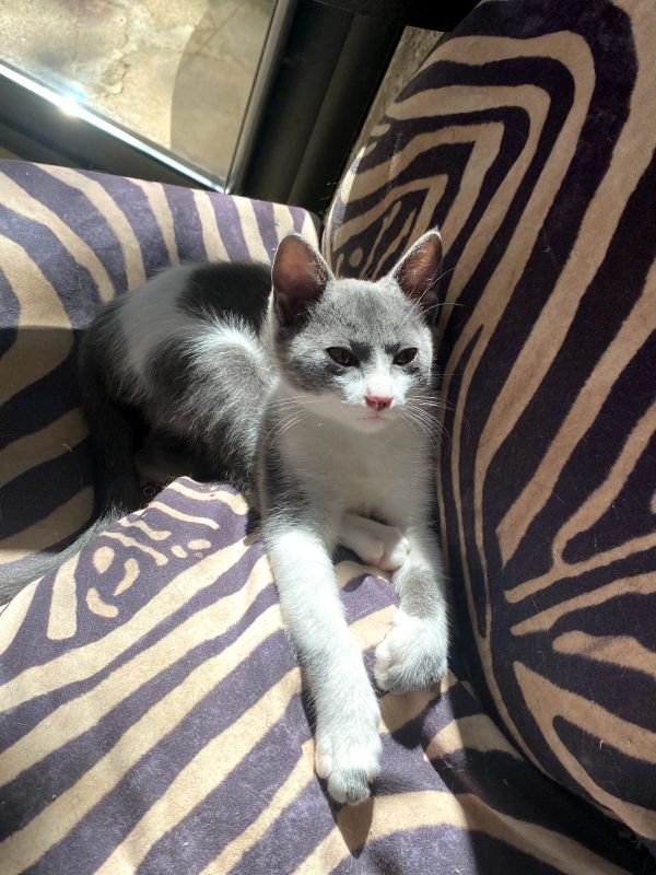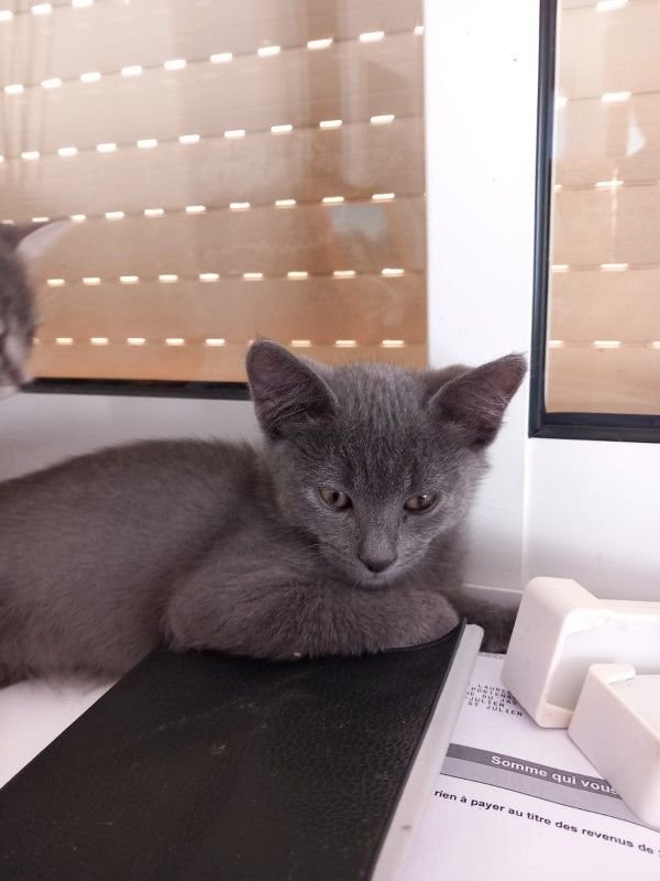 Réservé et câlin, c'est un chaton curieux et très doux de caractère. Il cherche une famille aimante et patiente, prête à le câliner et lui offrir un petit coin de canapé.