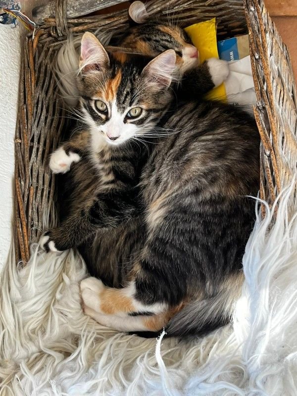 Une petite timide en plein progrès ! Encore un peu sur la réserve, cette jolie minette garde ses distances, juste assez pour se sentir en sécurité. Mais elle se laisse maintenant caresser et ronronne volontiers . Depuis deux jours, elle accepte même d’être prise dans les bras sans se débattre.